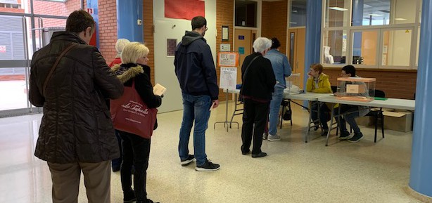 Electors fent cua per votar en una de les meses de l’Escola Freta