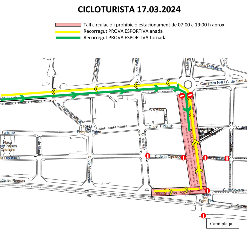 ⛔ Pg. de les Roques (entre Capaspre i C/ del Mar) de 07:00 a 18:00 aprox.