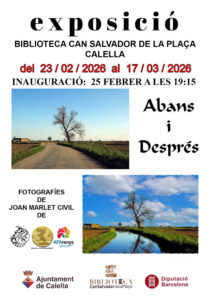 A la Biblioteca Can Salvador de la Plaça es va inaugurar aquest dimecres 25 de febrer l’exposició “Abans i Després“, una mostra del fotògraf Joan Marlet, membre de Foto-Film Calella, que explora les possibilitats creatives de la intel·ligència artificial aplicada a la fotografia.