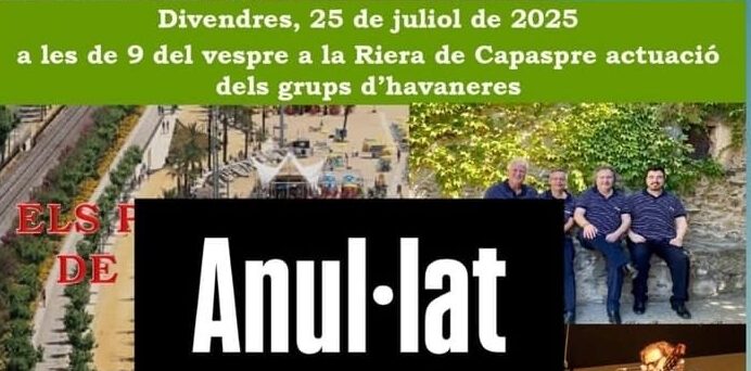La tradicional cantada d’havaneres prevista per demà divendres a la Riera Capaspre de Calella ha estat anul·lada a causa de la previsió de pluja. L’esdeveniment, que enguany arribava a la seva 31a edició sota l’organització de Gent de Barri de Pequín, comptava amb la participació dels grups Els Pescadors de l’Escala i Boira.