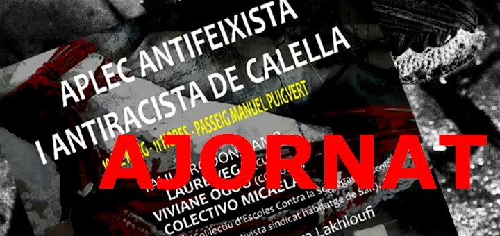 Ajornat sense nova data el primer aplec antifeixista i antiracista que s’havia de celebrar demà dissabte a Calella sota l’organització dels partits polítics de la CUP i Calella en Comú Podem, que justifiquen la decisió per la previsió de pluges. Durant la trobada s’havia de fer una taula rodona participada per representants del Sindicat Habitatge de Salt i el Col·lectiu Escoles Contra la Segregació, moderada per l’activista calellenca Fàtima Ezzahra Lakhloufi.