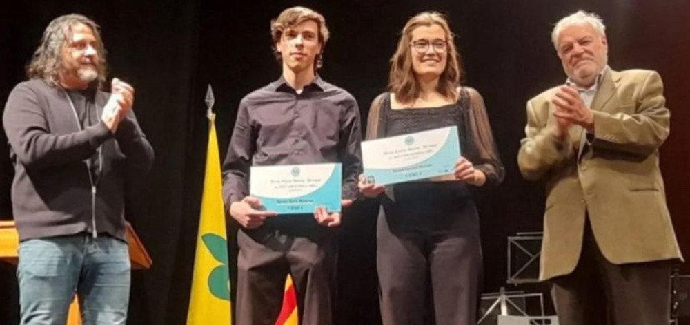 A les Notícies, la flabiolaire Raquel Carrera i el fiscornaire Ignasi Bofill guanyen ex aequo la Beca Josep Maria Bernat 2023. S’emporten 2.500 euros de premi.