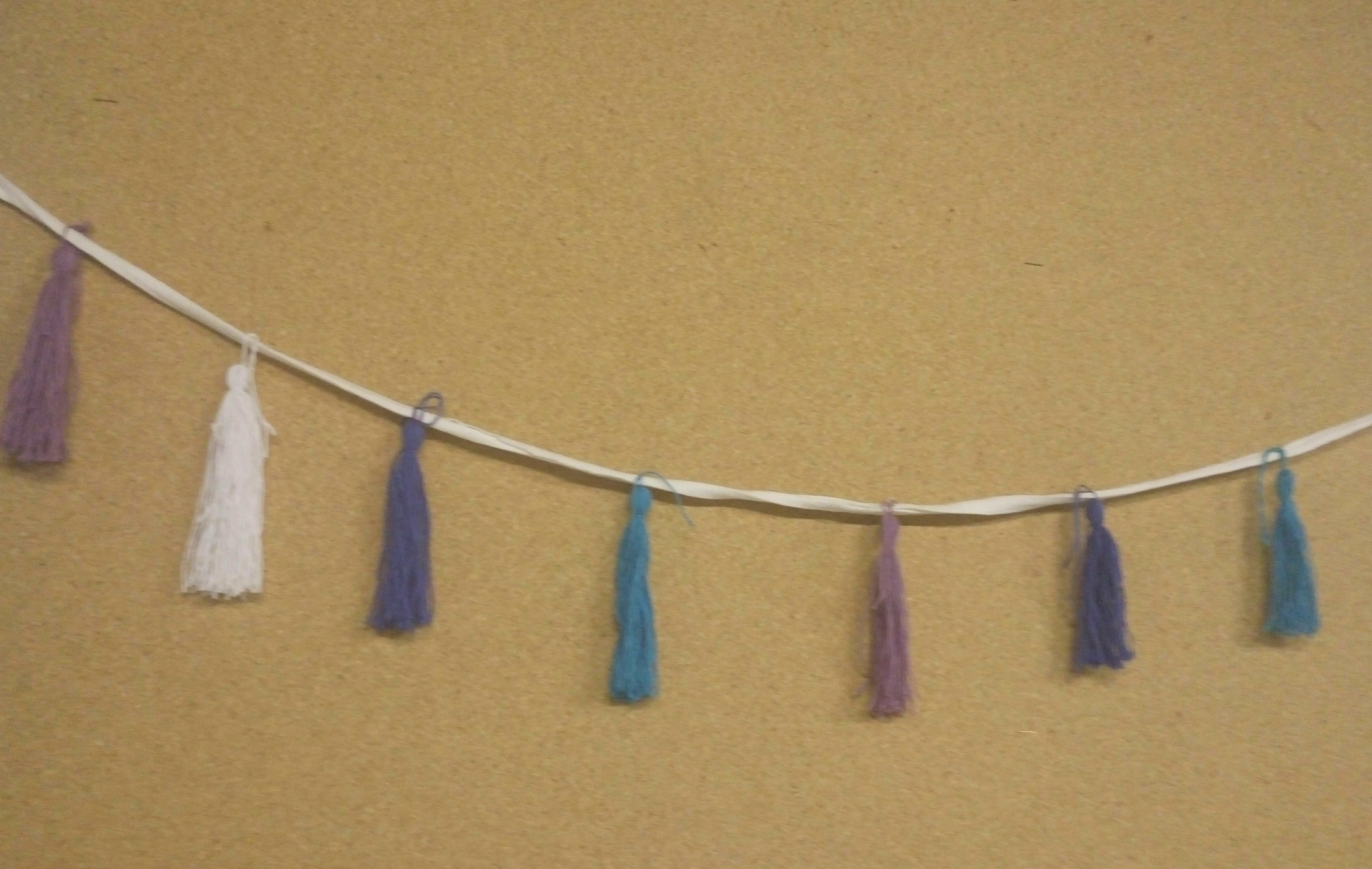 La Ruth Soteras ens porta avui una decoració fàcil, fet amb un beta i uns fils de cotó per fer una mena de garlanda que permet decorar qualsevol espai. Des d’una cortina a una pared, sigui d’interior o la terrassa ara que ve el bon temps… I si us fa mandra fer-ho molta estona, amb una en teniu un clauer i amb dues unes arrecades que a més estan de moda…