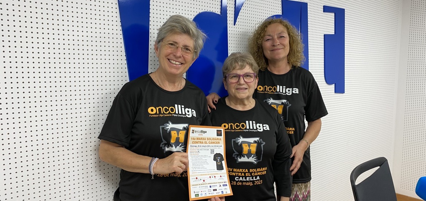 Aquest mes arriba una de les cites més importants en el calendari d’Oncolliga Calella. És la marxa Solidària contra el Càncer que enguany celebra la seva 14a edició. Es farà el 28 de maig i la novetat és que inclourà tres recorreguts de diferents quilòmetres aptes per a tots els públics. Ens en venen a parlar a Ona Maresme Maria Pera, Mònica Buneri i Teresa Artigues.