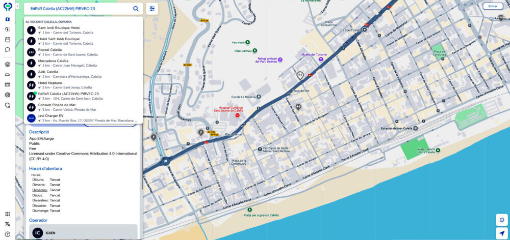 L’Ajuntament ha tret a licitació el contracte de subministrament i instal·lació de sis nous punts de recàrrega per a cotxes elèctrics, que se sumaran als dos públics existents a la part alta del carrer Sant Joan. Aquests estan fora de servei per una avaria, i no hi ha previsió de quan podran tornar a funcionar. Es repartiran per la cèntrica plaça del Mercat i cobrint altres dues zones amb una visió turística: l’aparcament de Les Palmeres i el Passeig de Les Roques. De fet, el projecte es finança amb fons europeus NEXT GENERATION dins del Pla de Sostenibilitat Turística en Destinacions. A Calella també hi ha connectors ubicats en recintes privats que són d’accés públics, i que es poden localitzar amb aplicacions com Electromaps, Place to Plug o el mateix Google Maps. Per exemple, als aparcaments dels supermercats Mercadona i Aldi, o a l’estació de servei Repsol de la carretera.