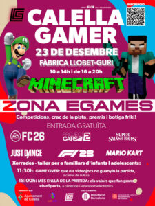 La cultura gamer serà protagonista el 23 de desembre amb la celebració del primer Calella Gamer, una jornada que combinarà competició, joc lliure i divulgació sobre l’ús responsable dels videojocs i els eSports. La iniciativa, sorgida dels Pressupostos Participatius Joves i organitzada per l’Ajuntament de Calella i Gamesportselectrònics, omplirà la Sala Polivalent de la Fàbrica Llobet-Guri entre les 10 i les 14 h i de 16 a 20 h.