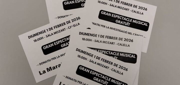 L’Associació de Gent Gran de Calella se suma al marcador solidari de La Marató de 3Cat amb un espectacle musical que té com a objectiu recaptar fons per a la investigació del càncer, causa a la qual es va dedicar la darrera edició. La iniciativa vol contribuir a augmentar la xifra final del marcador gràcies a la participació ciutadana i al compromís dels artistes locals. L’esdeveniment compta amb el suport de l’Ajuntament de Calella i tindrà lloc aquest diumenge a la tarda a la Sala Mozart. Per l’escenari hi passaran diversos artistes locals que s’han volgut sumar de manera altruista a la causa.