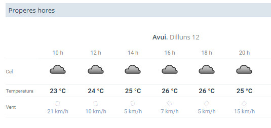 Després d’unes jornades amb molta calor i xafogor, el temps prendrà una treva durant uns dies. De cara demà s’espera un temps marcat per l’estabilitat i la bonança amb domini del Sol. Si bé hi haurà alguns núvols prims i més abundants durant el matí, i a la tarda farà més Sol amb vents fluixos com els d’avui.