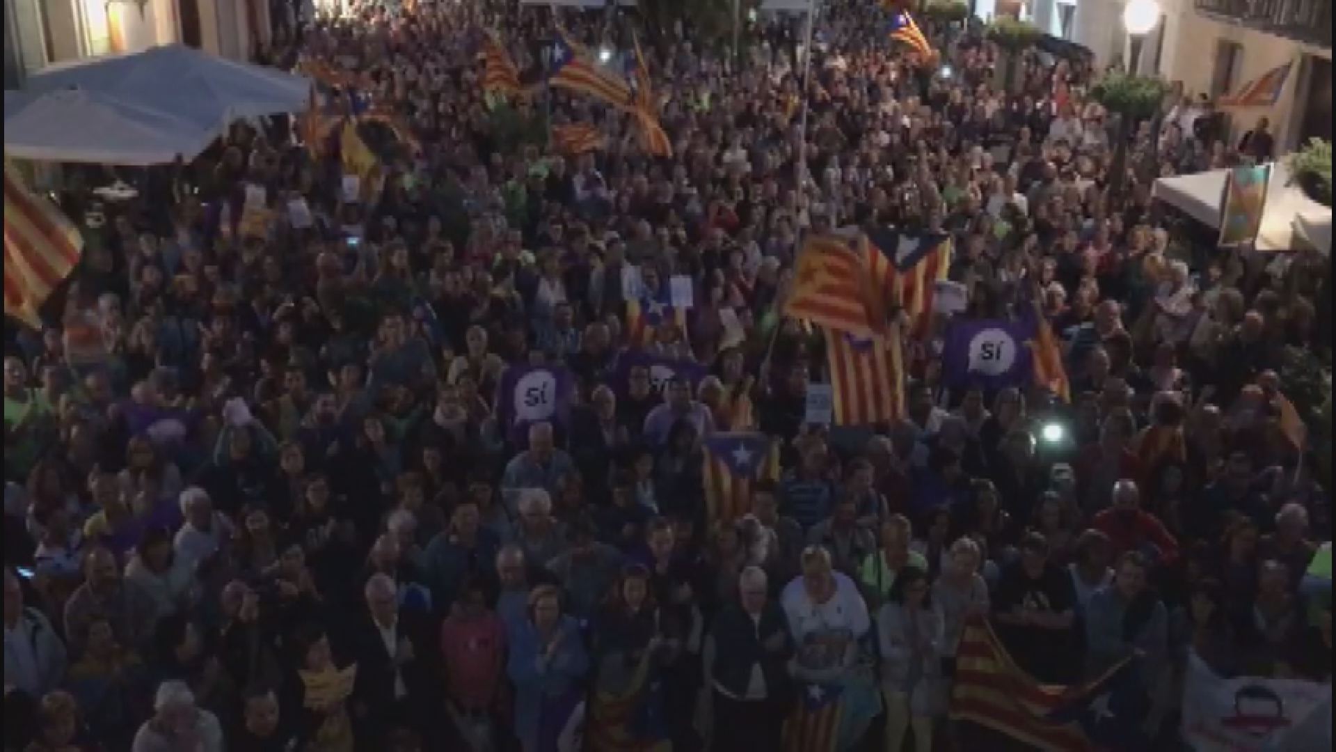 Unes cinc-centes persones han assistit a la concentració convocada a través de Twitter per l’alcaldessa de Calella i diputada de Junts pel Sí, Montserrat Candini. La gent hi va respondre omplint la plaça i exhibint estelades i algunes pancartes reclamant la llibertat i la democràcia. Ràdio Calella TV va recollir l’opinió d’alguns manifestants.