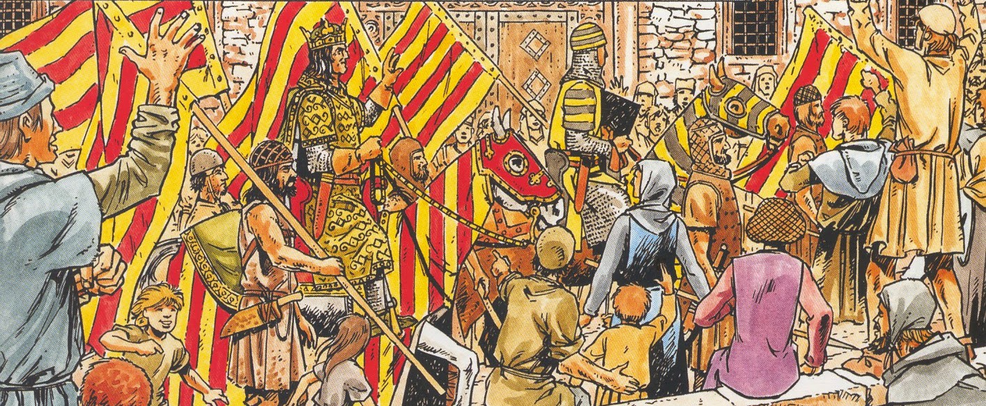 La Corona d’Aragó en temps de Jaume I havia acabat l’expansió per la Península Ibèrica, i ja havien conquerit València. També es van conquerir les Illes Balears i cap al Mediterrani va seguir l’expansió, que va portar esplendor a Catalunya. Escoltem Eduard Botanch:”A vegades diem que els catalans només tenim derrotes i Pere el Gran encarna un moment de la història de Catalunya molt brillant, on té una gran victòria en front els dos grans poders d’Europa d’aquell moment, que són el Papat i el Regne de França. El seu regnat va ser curt, només 9 anys, però van ser molt intensos. va ser un gran rei. l’epitat de El Gran el té ben merescut“.