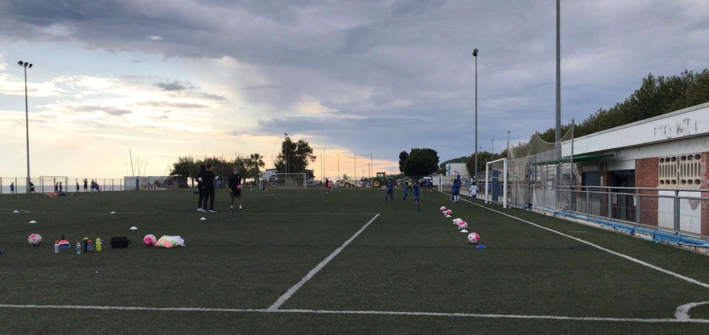 Ahir, alguns equips del CF Calella van entrenar-se segons el previst al Camp de Futbol de Mar.
