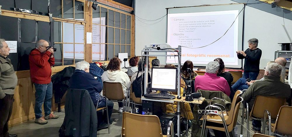 El curset consta d’un total de 15 sessions teòriques i pràctiques, i dues sortides els diumenges 12 de novembre i 3 de desembre. Les cinc primeres són de coneixement i maneig de la càmera fotogràfica, amb explicacions sobre el que és la sensibilitat (ISO), la velocitat d’obturació o l’enfoc, entre d’altres.