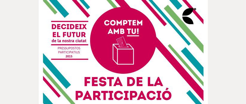 Serà a la Plaça de l’Església. El principal objectiu d’aquesta festa és facilitar al ciutadà que pugui votar entre les propostes finalistes al Procés participatiu del Pressupost 2015. Un segon objectiu és, a través d’activitats festives, captar l’atenció dels vianants que no estiguin informats dels mecanismes de participació ciutadana de l’Ajuntament i poder-los explicar.