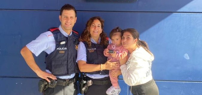 Els Mossos han publicat una fotografia dels dos agents, amb la mare i la petita Sinaí, per donar a conèixer aquesta història amb final feliç.