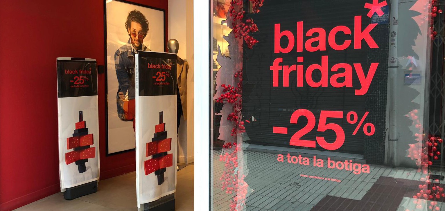 L’onada consumista del Black Friday ha aterrat plenament a Calella i així ho demostren els cartells anunciant promocions i descomptes especials que fa dies s’anuncien des dels aparadors de les botigues. Principalment al carrer Església, en ple eix comercial de Calella. I ja no només en roba, calçat o complement, que van ser les primeres en apuntar-s’hi; el divendres negre de compres ha arribat a tot tipus de productes. La punta d’activitat es preveu per divendres i el cap de setmana.