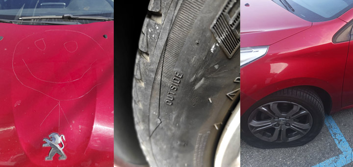 A les tres punxades de rodes que data en els dies 18 d’octubre i 21 de novembre del 2024, i la del 4 de gener del 2025 – amb denúncia als Mossos d’Esquadra –, l’afectada hi suma també una ratllada del capó del mateix cotxe durant la primera quinzena de maig del 2024. De tot en guarda proves gràfiques, que podeu veure a continuació.