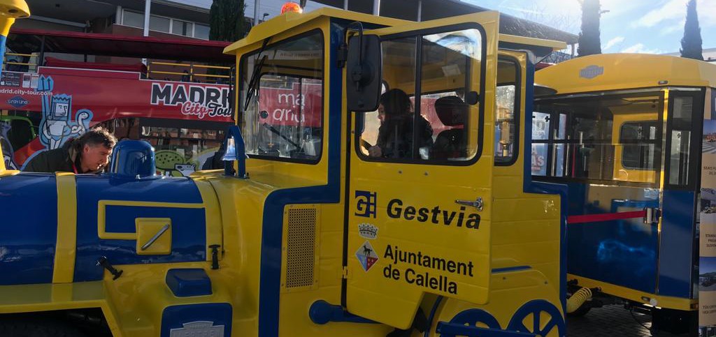 El nou model de Carrilet, amb motor híbrid i retolat amb imatges dels actius turístics de Calella, s’exposa a la Fira Internacional de Turisme de Madrid que s’ha inaugurat aquest matí i reunirà més de 50.000 professionals del sector de 165 països i regions del món. L’empresa que l’ha construït ha volgut aprofitar l’aparador de Fitur per presentar aquest trenet turístic, que és únic a tot el territori espanyol. Ocupa una de les places que hi ha a l’accés principal d’Ifema i la seva presència ja ha despertat l’interès i la curiositat dels assistents. Així ho ha explicat l’alcaldessa Montserrat Candini que, juntament amb el tinent d’Alcaldia i president de Gestvia, Albert Torrent, i personal de l’Oficina de Turisme, conformen la delegació local que es promociona dins l’estand de Catalunya.