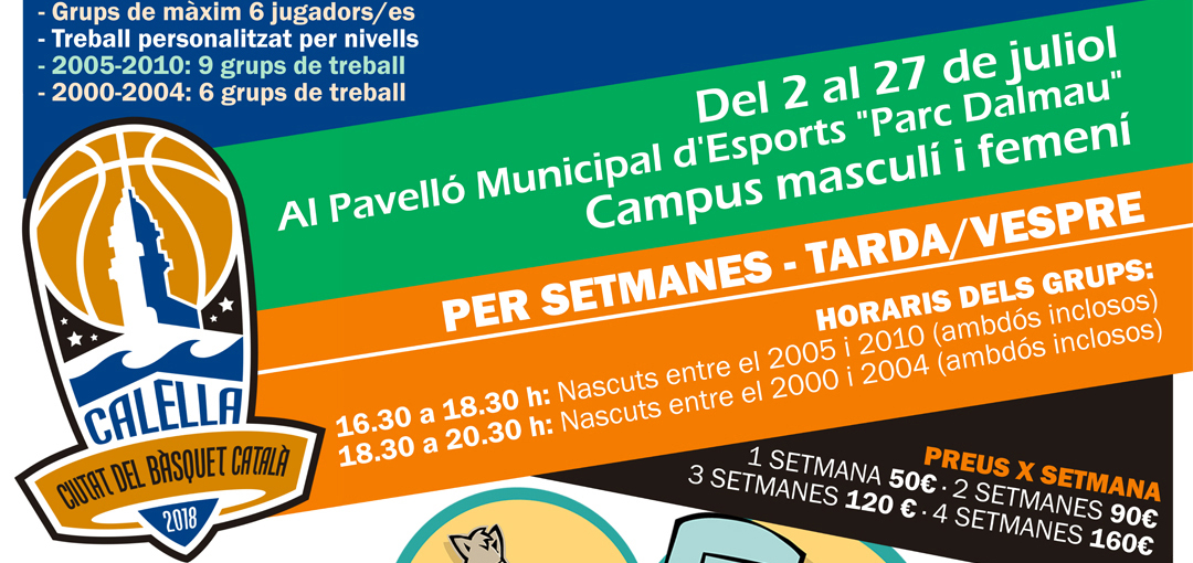 Tindrà lloc durant les tardes del 2 al 27 de juliol al Pavelló Municipal d’Esports “Parc Dalmau”. Les inscripcions encara no estan obertes. Seran per internet, a través del web del club, fins el 31 de juny o fins a esgotar les places.