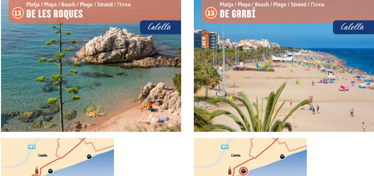 A la guia de platges s’hi detallen les característiques i serveis dels tres trams de litoral calellenc: Les Roques, la Platja Gran i la Platja de Garbí. Aquesta última, de 752 metres d’extensió, és la més dotada de les tres: hi destaquen les distincions de qualitat de la Bandera Blava i la Q de Qualitat, dutxes, rentapeus, recollida selectiva de la brossa, aparcament de bicicletes, passarel·les per accedir a l’aigua, punts d’assistència sanitària, embarcació de rescat, servei de megafonia, lloguer de gandules i de para-sols, serveis d’esport nàutic i oferta de bar i restauració. Entre moltes d’altres anotacions.