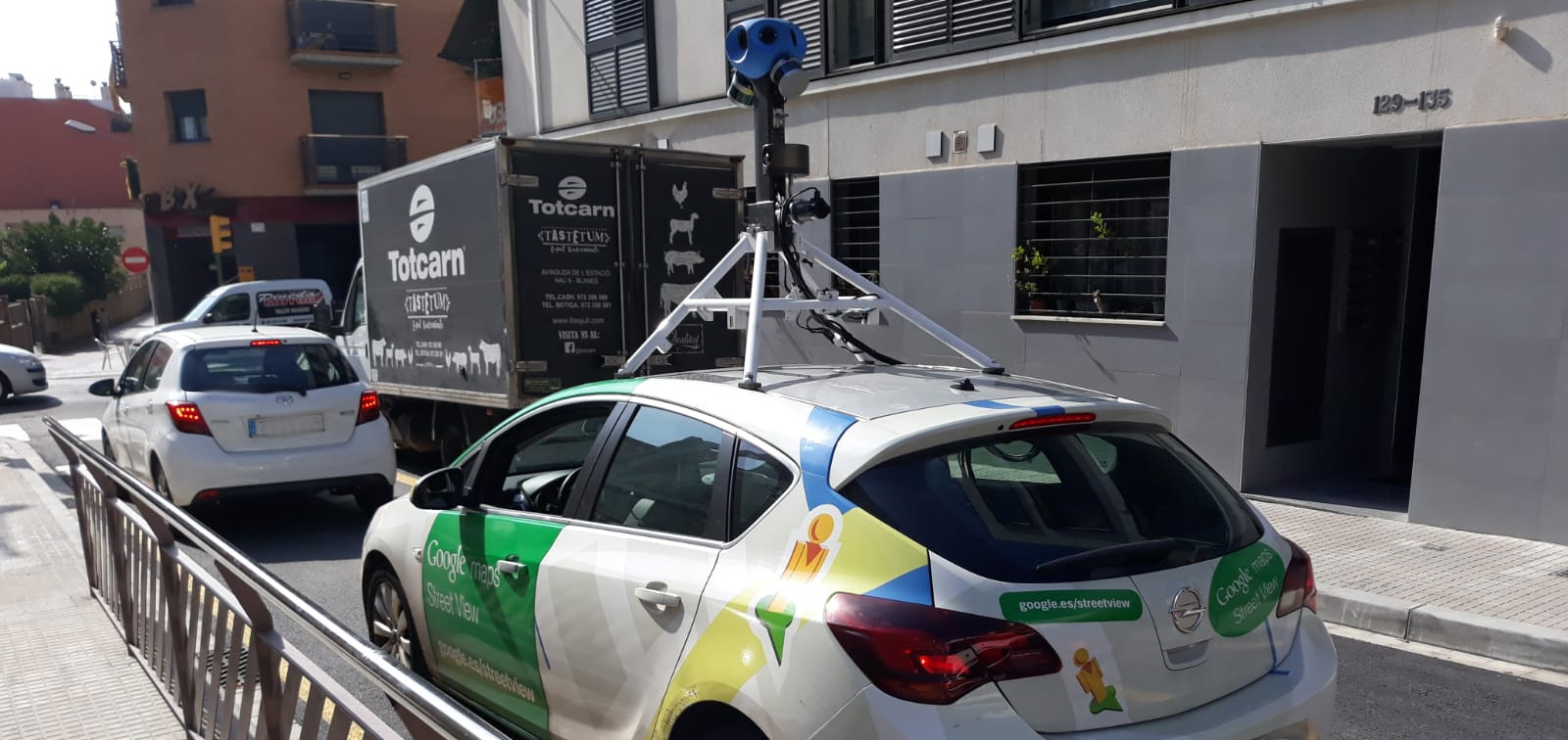 Els canvis en la fisonomia de les ciutats obliga a Google a actualitzar constantment les imatges dels seus mapes, que ofereixen navegar pels carrers de més de 220 països del món. Avui, el cotxe que enregistra les imatges es troba a Calella. Es reconeix fàcilment pels logotips del vehicle i la càmera que hi ha col·locada al sostre.