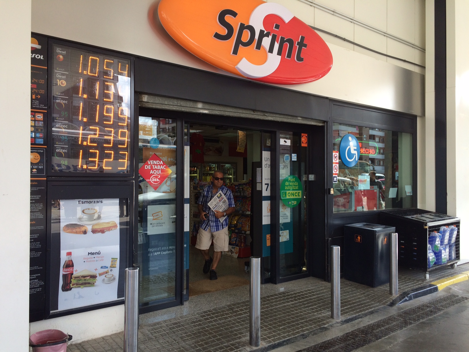 Aquest primer d’agost, el lluminós amb la tarifa de la benzinera de Calella assenyala que el preu del litre de benzina normal és d’1,199 euros; mentre que el gasoil, més barat, encara per sobre de la barrera de l’euro.