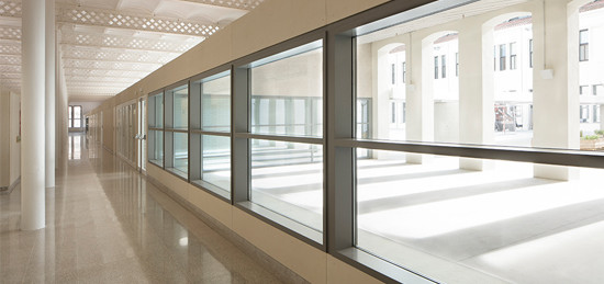 Diu que s’ha volgut reconèixer el valor de les naus i aprofitar la seva important volumetria. S’ha evitat treballar amb falsos sostres a l’hora de crear els espais interior i aconseguir així l’entrada de llum natural.