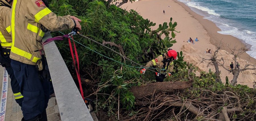 Una dotació de bombers ha retirat part d’un arbre i n’ha assegurat les arrels per prevenir la seva caiguda. En concret, l’arbre es troba a la platja de Garbí.