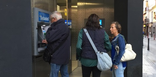 Alguns ciutadans de Calella han seguit la crida de l’Assemblea Nacional Catalana i Òmnium Cultural i han acudit a primera hora del matí a treure diners dels seus bancs com a mostra de rebuig a l’empresonament dels presidents de les entitats independentistes.