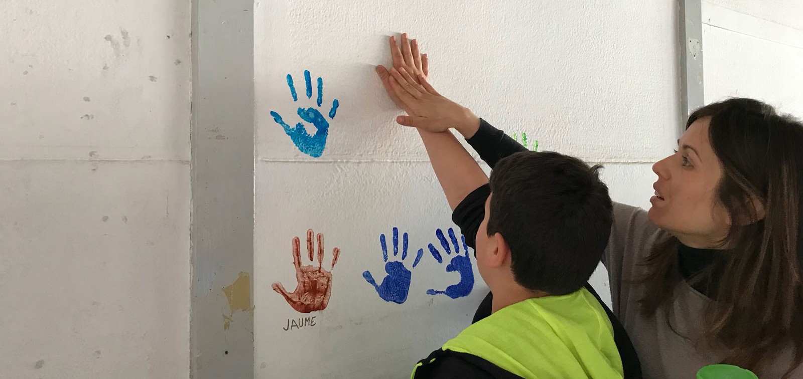 Els nens i nenes del Salicrú deixen les seves mans a les parets de l’escola