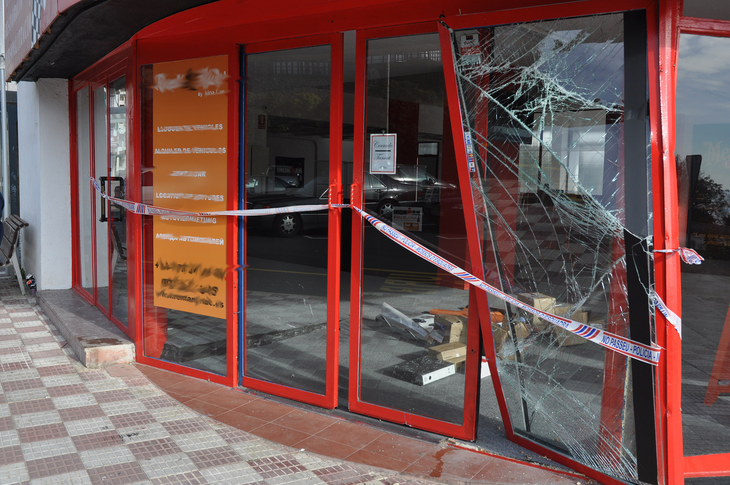 Enxampen dos homes robant a una botiga després d’encastar-hi un cotxe robat