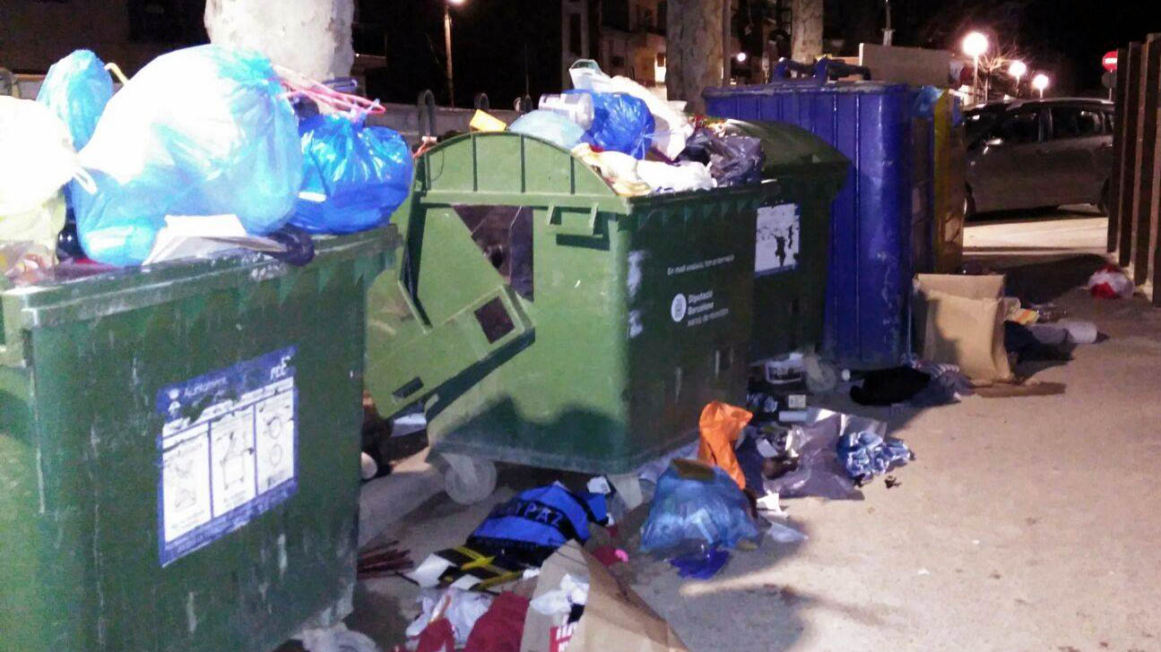 Esquerra adjunta un seguit d’imatges on es veuen els contenidors plens i amb deixalles al seu voltant, ja que no hi caben al seu interior.