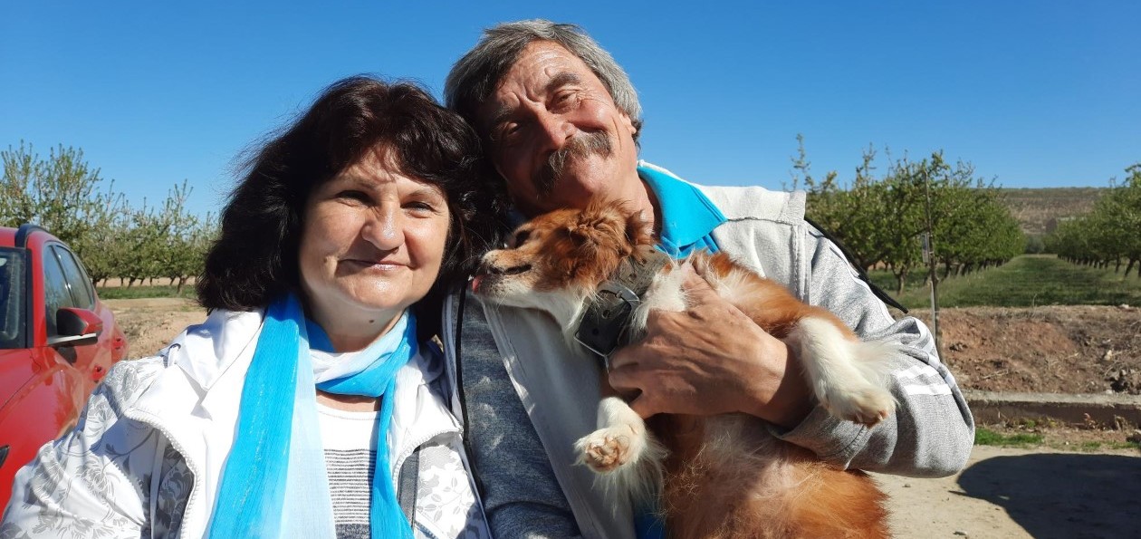 Quan van arribar sota el protectorat de Creu Roja se’ls va buscar un hospedatge que permetia estar-se amb el seu gos, cosa que per a ells era molt important. Van estar-se un mes en un hotel de Pineda de Mar, juntament amb altres refugiats ucraïnesos que tenien animals, gossos i gats. Al cap d’un mes, els van traslladar a un centre de refugiats de Lleida i els van passar al programa d’una altra ONG, en aquest cas Moviment per la pau. Va ser llavors quan van haver-se de separar perquè l’establiment no permetia l’estada d’animals, i va acabar a un refugi. Durant aquest temps, han estat separats per una distància d’uns 6 quilòmetres a peu però hi anaven cada dia, sense fallar, amb temperatures de més de 40 graus i travessant camps i horts. Després els van traslladar a Calella, on tampoc se’ls permet tenir gos.