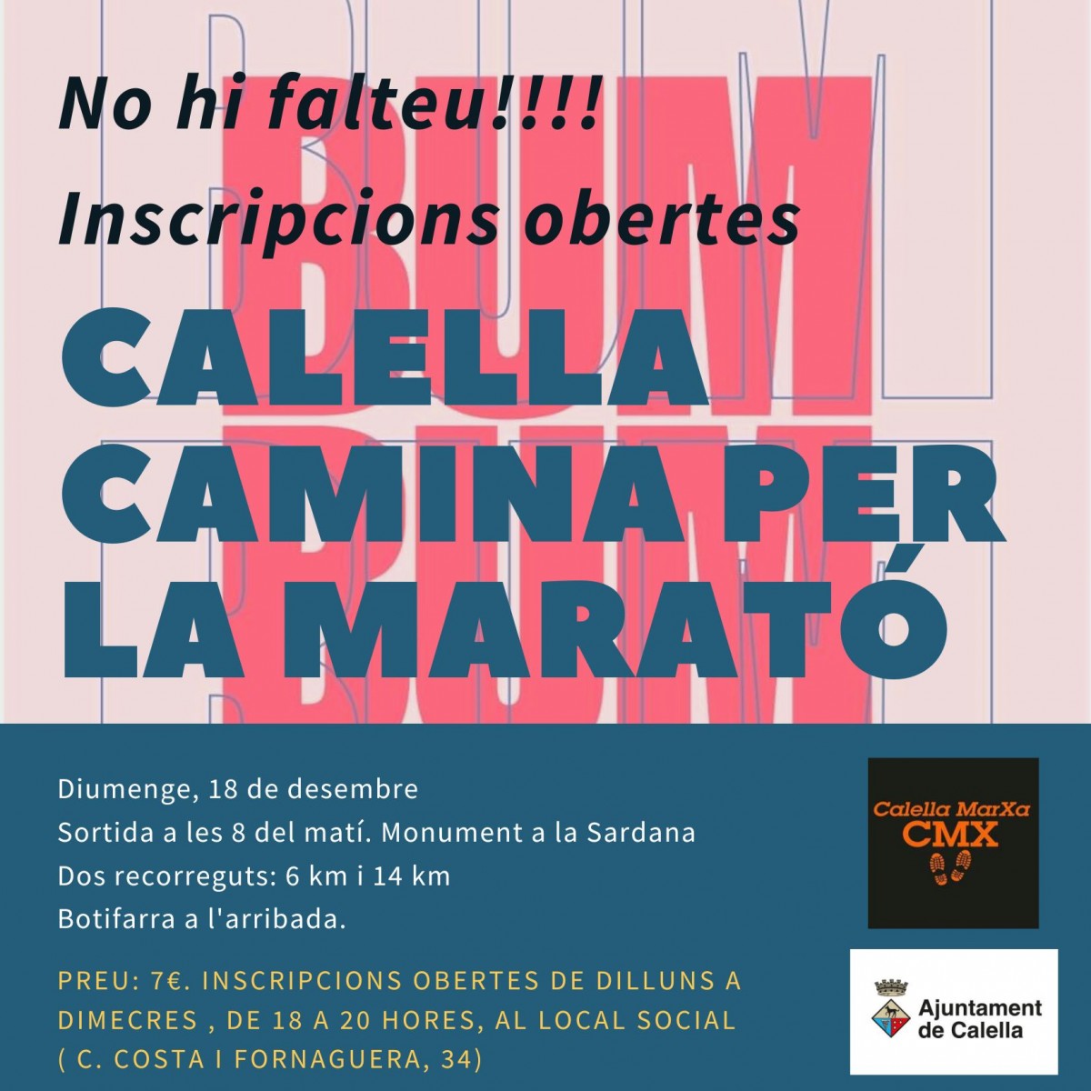 Les inscripcions estan obertes des del 14 de novembre fins el 14 de desembre i qui es vulgui apuntar ho pot fer els dilluns, dimarts i dimecres, de 18 a 20 hores, al local de Calella Marxa, situat al c. Costa i Fornaguera, 34. Preu: 7 euros.