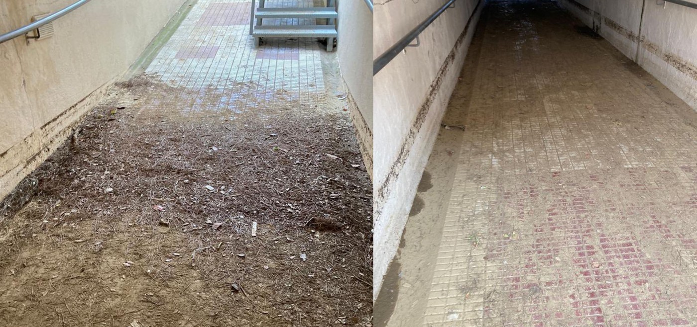 Hem vist que aquest dimarts el pas soterrani de Sant Joan encara estava saturat de pinassa i això suposa un doble perill, per les persones que hi passen i davant les previsions meteorològiques del cap de setmana, que tornen a anunciar pluges intenses. Per això hem demanat la neteja dels espais.
