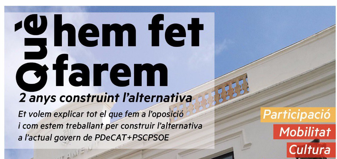 Amb el títol «Què hem fet, què farem. Dos anys construint l’alternativa», els regidors republicans encapçalats per Cristina Gómez explicaran al públic la feina que fan des de l’oposició i com estan construint l’alternativa al govern actual del PDeCAT i PSC.