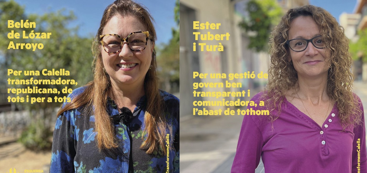 El projecte d’Esquerra per a les municipals del 28 de maig compta amb els suports de Belén de Lózar i Ester Tubert, a qui el partit ha presentat aquests últims dies a través de les xarxes socials. Van de número 13 i 15 a la llista, respectivament. La candidatura la torna a encapçalar Xavier Ponsdomènech, l’actual portaveu del grup municipal i cap de l’oposició a l’Ajuntament de Calella.