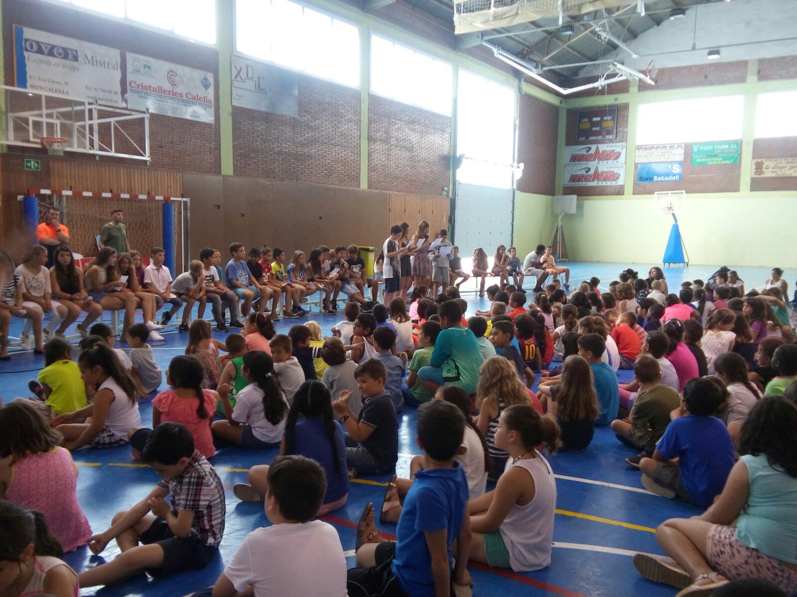 Nosaltres avui hem assistit a la festa fi de curs de l’Escola La Minerva. S’ha fet aquest matí al pavelló del Parc Dalmau i hi han participat els 428 alumnes d’aquest centre d’Infantil i Primària. Ha estat una festa especial perquè s’ha fet el comiat dels alumnes de sisè que avui han tancat el seu cicle d’educació primària.