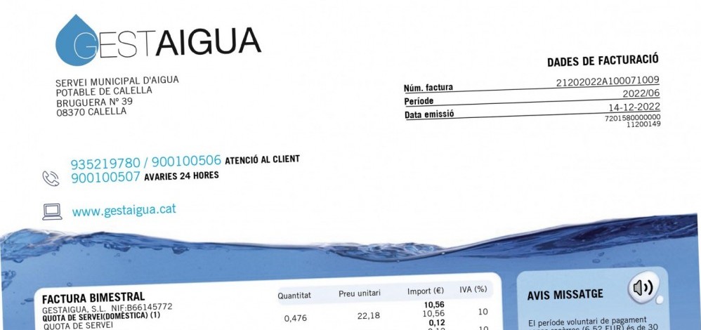 El rebut de l’aigua podria encarir-se un 17% al 2023 si el consell d’administració de Gestaigua aprova la proposta de modificació tarifària que es deriva de l’increment del preu de l’energia. S’estima que la repercussió serà d’uns 4 euros de mitjana per rebut domèstic. Així ho ha indicat el conseller delegat de la companyia mixta que gestiona el subministrament de l’aigua a Calella i tinent d’Alcaldia de Serveis de ciutat, Albert Torrent, qui ha llançat un dard contra el Govern de la Generalitat de Catalunya per la decisió d’assumir el sobrecost energètic de les poblacions de l’àrea metropolitana de Barcelona.
