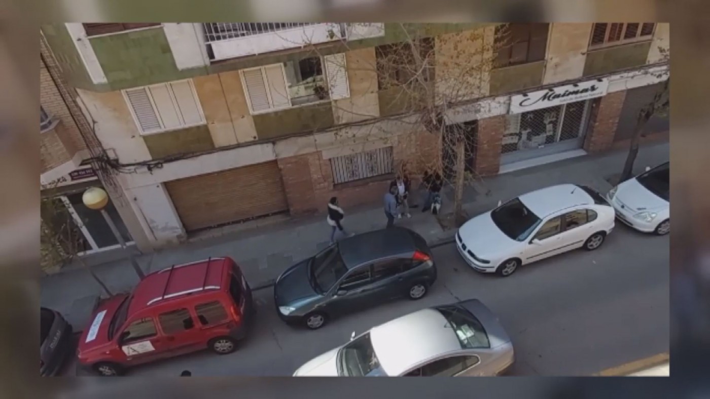 En les imatges que va captar el veí, es veu com un d’ells –el que porta la dessuadora blanca que li cobreix el cap– aprofita l’enrenou que hi havia al carrer per emportar-se alguns objectes de la bossa que la víctima havia deixat tirada al terra, entre els cotxes aparcats al carrer.