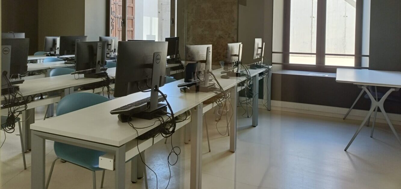 Una sala equipada amb ordinadors, pensada perquè els estudiants treballin còmodament, i en cas de necessitar-ho, poden comptar amb el suport de les educadores per resoldre dubtes. Mariceli Santarén és la regidora de Joventut de l’Ajuntament de Calella.