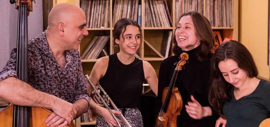 La formació està integrada per Joan Chamorro (contrabaix i veu), Èlia Bastida (violí, saxo tenor i veu), Alba Armengou (trompeta i veu) i Carla Motis (guitarra i veu).