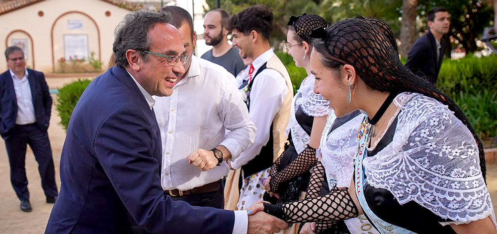 Visita institucional del president del Parlament de Catalunya, Josep Rull, a la diada central de l’Aplec de Calella, que és el Pairal de Catalunya. Va ser ahir diumenge al Pati de l’Ós, on Rull va afegir-se a una de les rotllanes per ballar la simbòlica “Record de Calella”, la sardana composta per Vicenç Bou i interpretada a conjunt per totes les cobles, que és un himne per a tots els calellencs i calellenques. Des d’allà, també va ressaltar el valor de la trobada que ha sumat la seva 97a edició.
