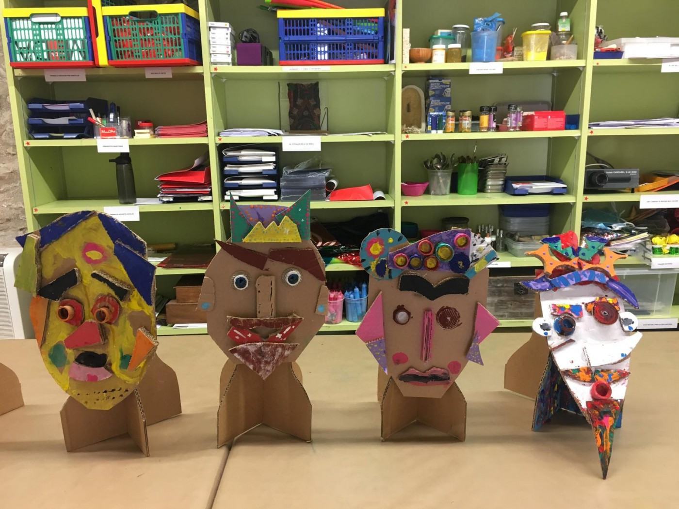 És un taller on hi ha ulls, orelles, nassos, boques… Llavors cadascú ha de fer el seu propi puzle de la cara que els hi representa. Tot això ho exposarem a la paret de la biblioteca i tothom posarà un nom a la seva cara o carota. És una mena de fer una disfressa diferent basada només en la cara, però modificada segons cada grup vulgui fer.
