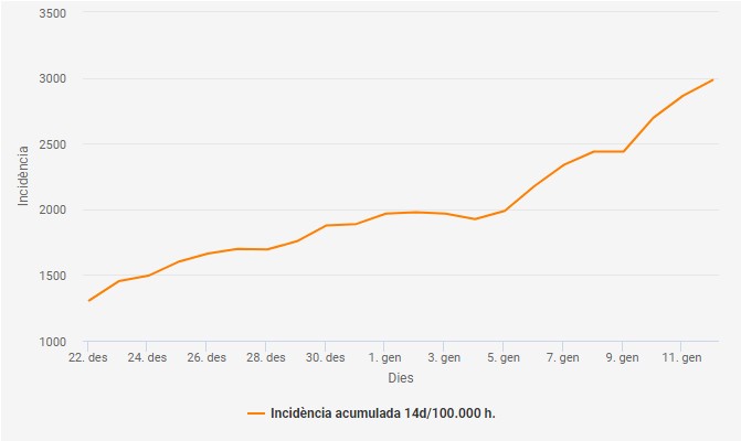 El mapa d’incidència de la Covid manté tenyits de color vermell intens gairebé tots els municipis i pobles de Catalunya, i Calella no n’és una excepció. Les dades epidemiològiques indiquen una situació de risc molt alt tant pel que fa la incidència acumulada, que frega els 3.000 punts, com la taxa de reproducció, que torna a pujar i se situa a l’1,4.
