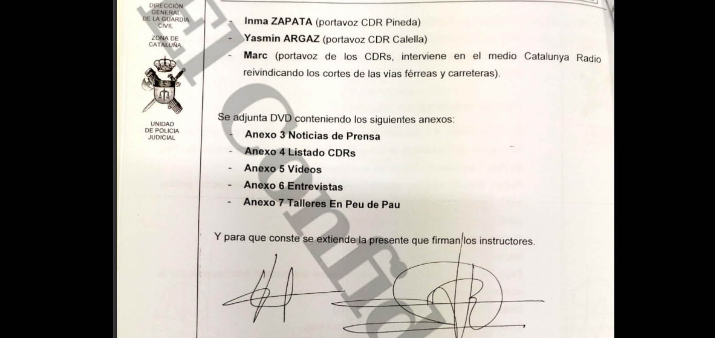 La Guàrdia Civil ha identificat als portaveus dels Comitès de Defensa del Referèndum (CDR). Entre els identificats, es troben les portaveus dels CDR de Calella, Inma Zapata i Yasmin Argaz, del CDR de Pineda de Mar.