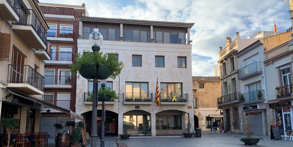A la façana s’hi manté el llaç groc –símbol del moviment independentista– i la senyera, en aquest cas presidint en solitari el balcó principal del consistori.