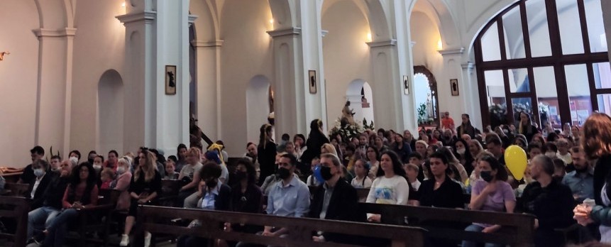 Aquest Dilluns de Pasqua, la parròquia de Santa Maria i Sant Nicolau ha sigut l’escenari de congregació de tots els nouvinguts jueus d’Ucraïna. L’acte ha comptat amb la visita d’una rabina dels Estats Units qui ha sigut l’encarregada d’animar la celebració. La festa ha comptat amb els seus parlaments i la participació d’alguns dels nens que hi han assistit.