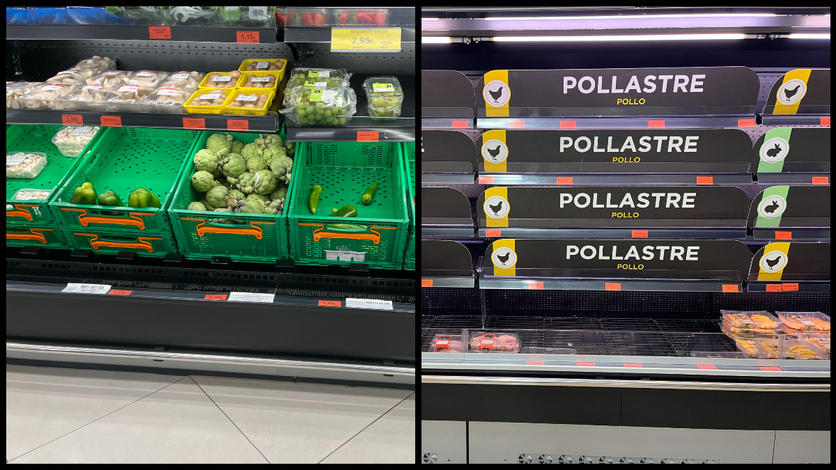 Aquest dissabte a la tarda, alguns supermercats de Calella ja havien recuperat part dels seus estocs. Però seccions com les de fruites i verdures o la carn seguien amb una manca preocupant d’aquests aliments de primera necessitat.