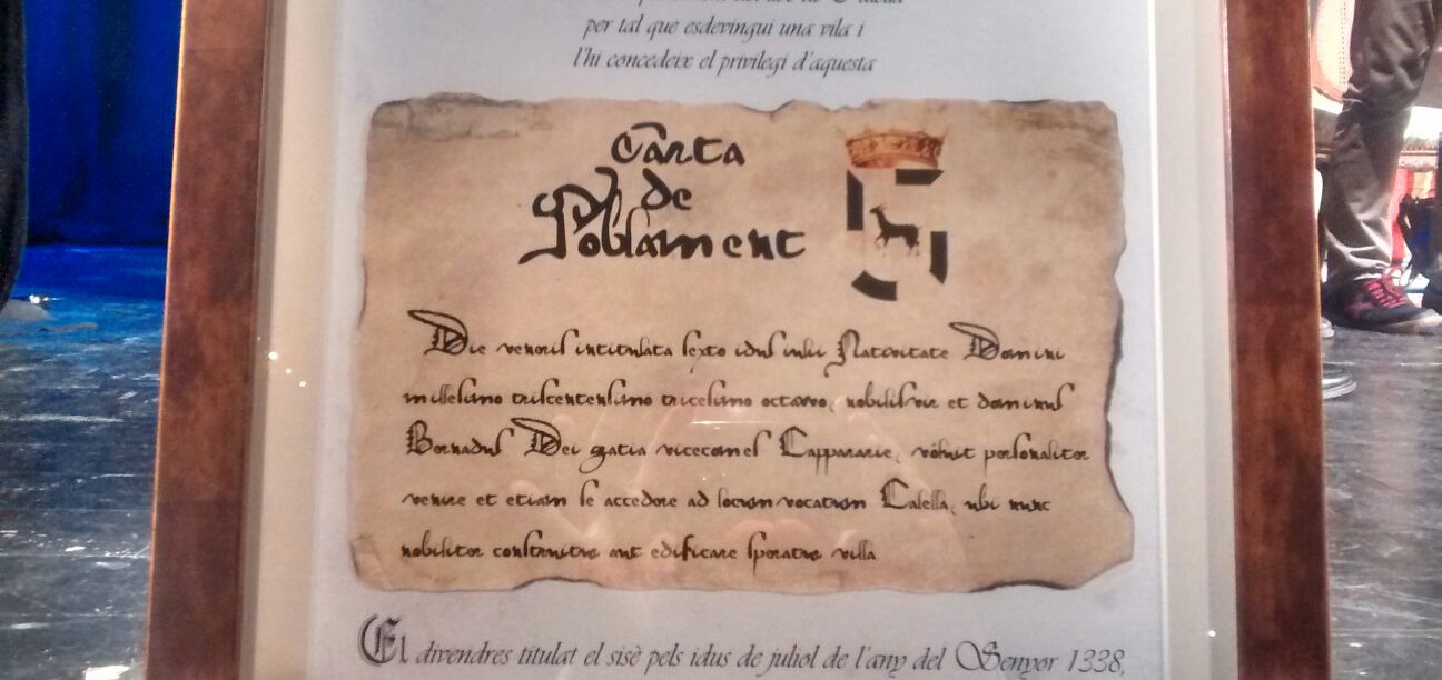 La sala de plens de l’Ajuntament lluirà la Carta de Poblament de Calella 680 anys després