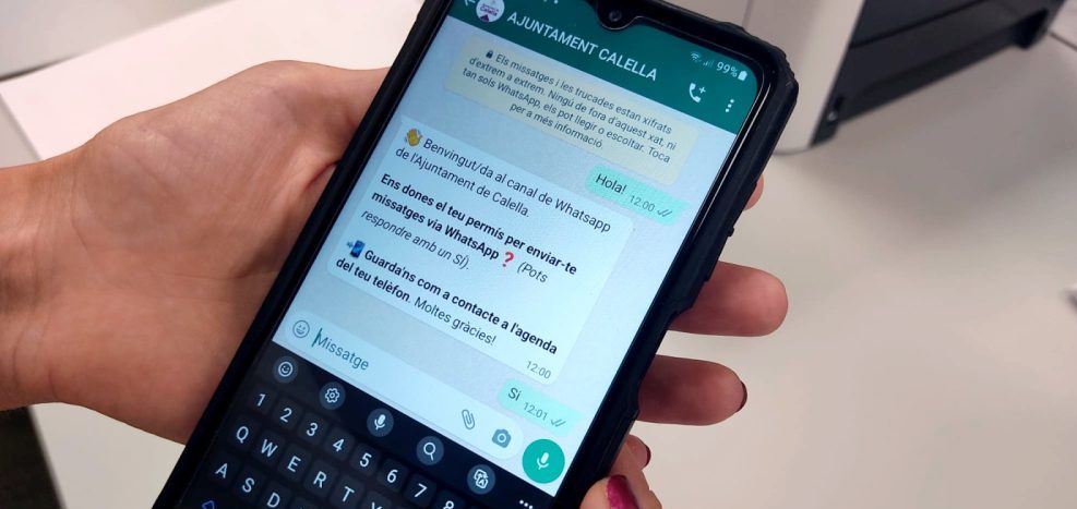Ara ja no caldrà consultar el web o les xarxes socials municipals per estar al corrent de la informació que dona l’Ajuntament de Calella. Es pot rebre directament al telèfon mòbil només apuntant-se a la llista de difusió que s’acaba de crear per tal de reforçar la comunicació amb la ciutadania.